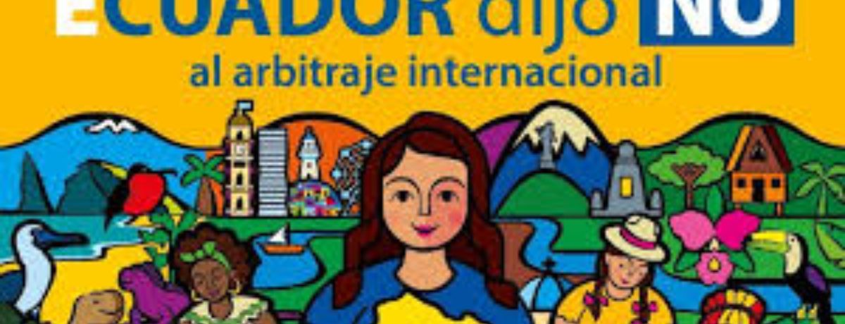 La Constitución de Montecristi, reconocida como garantista de derechos humanos, colectivos y de la naturaleza, es consistente cuando prohíbe el arbitraje internacional, un mecanismo que al otorgar al inversor un blindaje jurídico como el arbitraje en tribunales como el CIADI o la Corte Permanente de Arbitraje (CPA), entre otros, subordina los derechos relacionados con el sostenimiento de la vida a los intereses del capital. Que las empresas transnacionales tengan la potestad de demandar al Ecuador en tribunales internacionales de arbitraje como medida de chantaje al Estado en favor de sus intereses, constituye una amenaza grave al derecho al agua y la prelación en su uso, al sumak kawsay, los derechos de la naturaleza, los derechos de los pueblos, la soberanía alimentaria, la consulta previa, la reparación integral, la participación.
